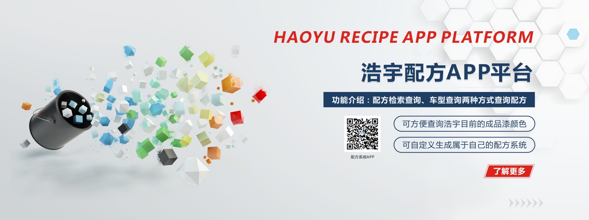 浩宇化工科技是一家極富創新并活躍于中國汽車修補漆市場的高新化工科技公司。作為中國汽車修補漆的先行者,我們長期致力于開發、制造和銷售最可靠、安全易用的高品質產品。產品涵蓋涂裝前處理產品、底漆、底色漆、面漆、清漆到調色用色母及配套輔料等,我們齊全的產品種類可以為各類汽車及相關交通工具的修補和整車的翻新及工業領域提供全面專業的色彩及涂裝解決方案。